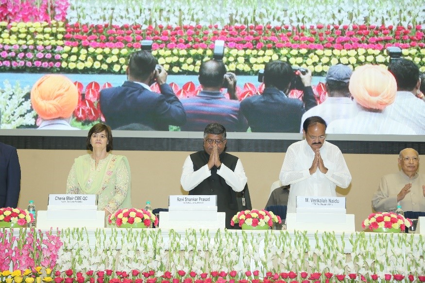 The Loomba Foundation held an event at the Vigyan Bhawan in New Delhi on Saturday, 23rd June, 2018, to mark the UN recognized International Widows Day. The event was attended by the Hon’ble Vice President of India, as Chief Guest, and the Hon’ble Union Minister of Law and Justice, as Guest of Honour. Mrs. Cherie Blair CBE QC, President of the Loomba Foundation travelled from London to Delhi to attend this important annual event, together with the Founder and Chairman Trustee of the Loomba Foundation, The Lord Raj Loomba CBE and his wife Lady Veena Loomba and their son, Hon’ble Rinku Loomba. His Excellency Sir Dominic Asquith, British High Commissioner to India, also graced the event with his presence.